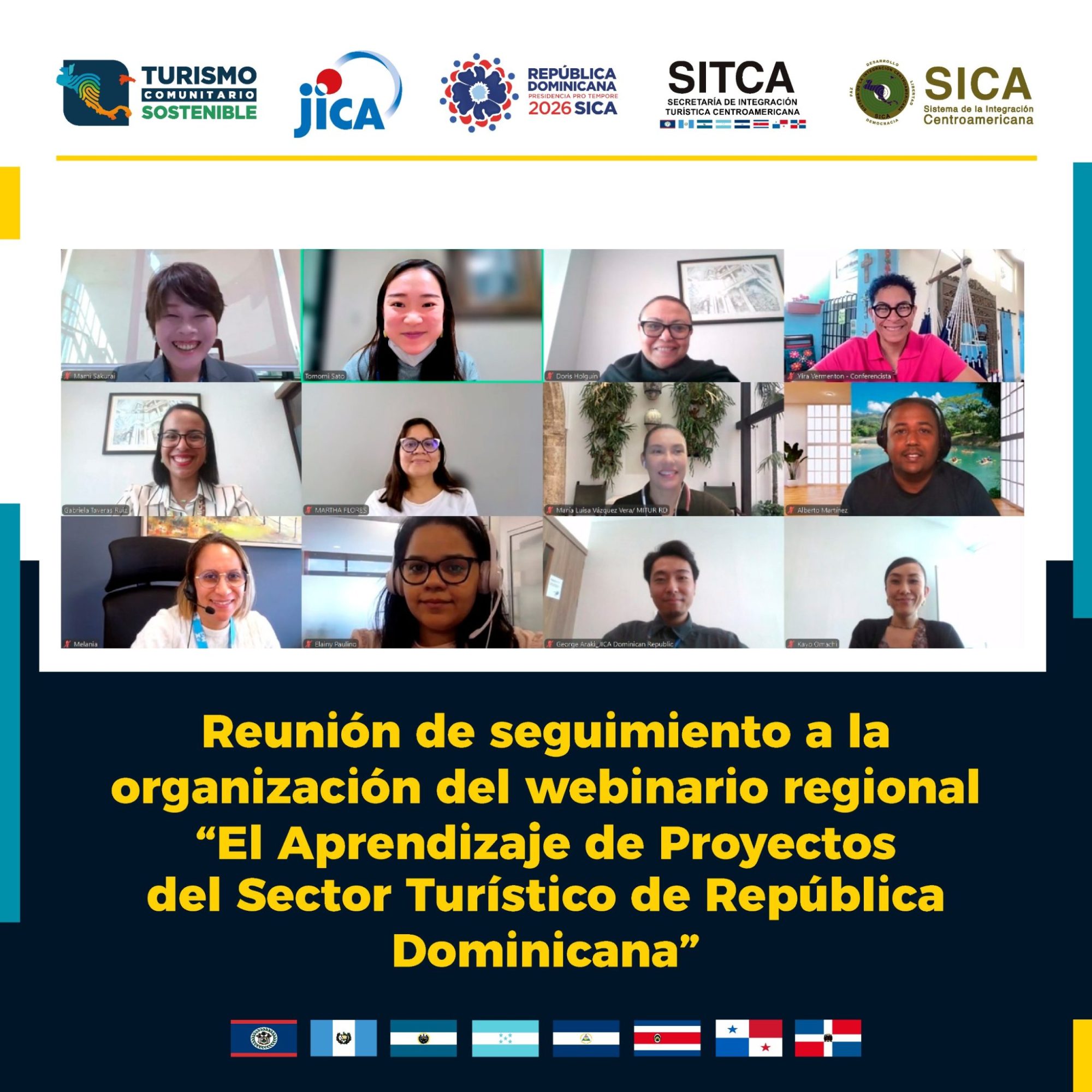 En el marco del Proyecto de Fortalecimiento de Capacidades para la Promoción del Turismo Comunitario Sostenible en la región del Sistema de la Integración Centroamericana (SICA), el 20 de febrero se realizó una reunión virtual para dar seguimiento a la organización del webinario regional “El Aprendizaje de Proyectos del Sector Turístico de República Dominicana”, programado para el 12 de marzo de 2026.